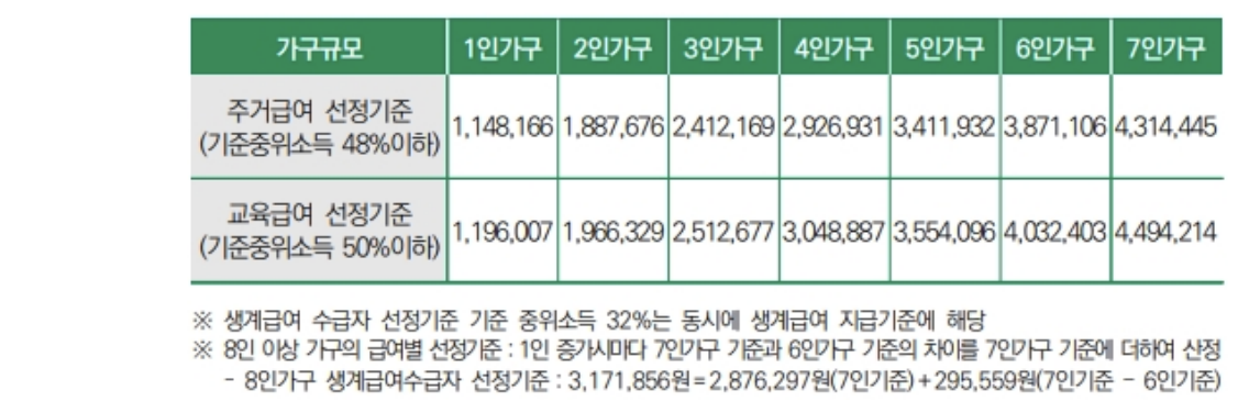 | 주거급여 | 중위소득의 48% | 약 123만 원 | 약 311만 원 |